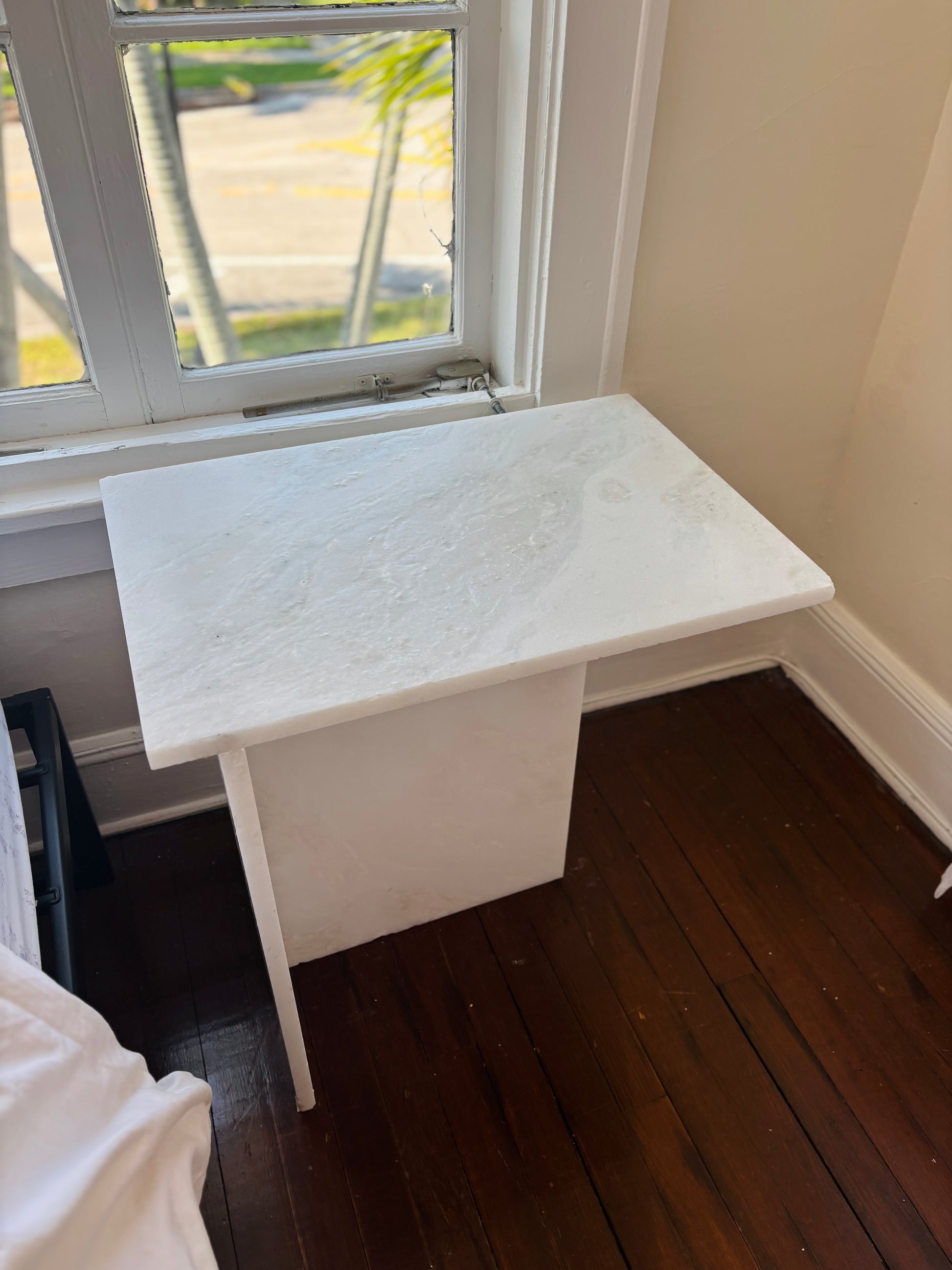 Crafted from genuine white marble, this side table brings a timeless, modern elegance to any room. Its sleek silhouette and natural stone finish make it a versatile piece — perfect as a nightstand, sofa-side accent, or a statement corner table.